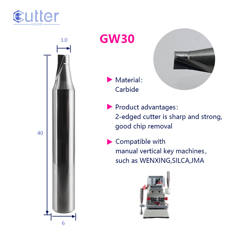 φ3.0xD6x40Lx2T Carbide Laser Cutter compatible with Manual Key Cutting Machines