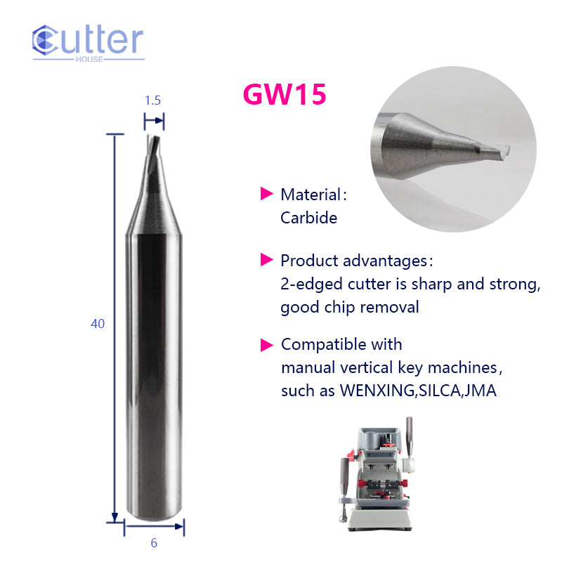 φ1.5xD6x40Lx2T Carbide Laser Cutter compatible with Manual Key Cutting Machines