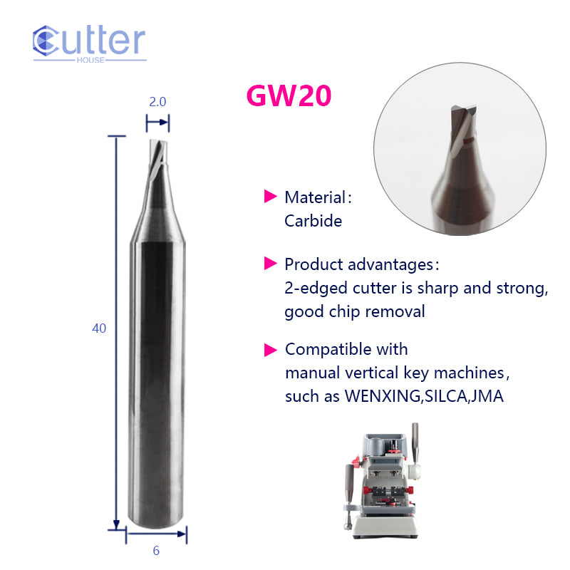 φ2.0xD6x40Lx2T Carbide Laser Cutter compatible with Manual Key Cutting Machines