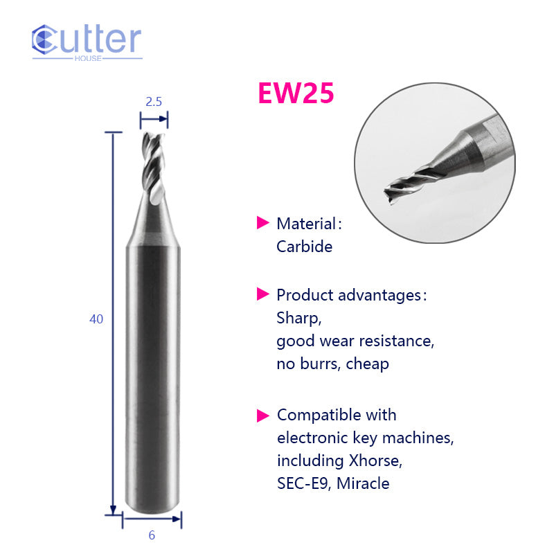 φ2.5xD6x40Lx3F Carbide Laser Cutter compatible with Electronic Key Cutting Machines