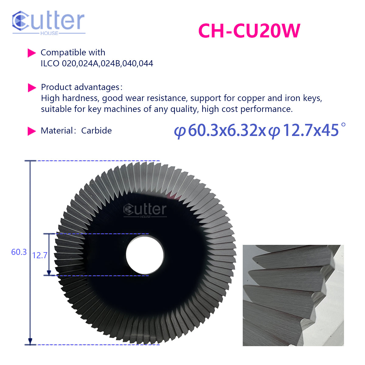 CU20 φ60.3x6.32xφ12.7x45° Carbide Angle Milling Cutter compatible with ILCO