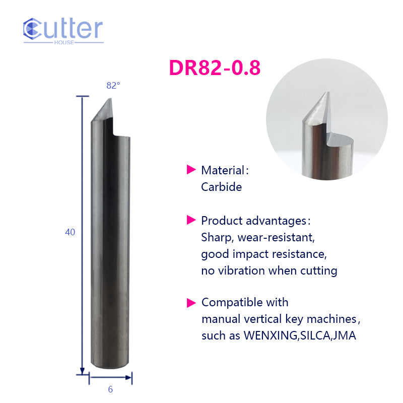 D6x82°x40Lx1T-0.8 Carbide Dimple Cutter compatible with Manual Key Cutting Machines