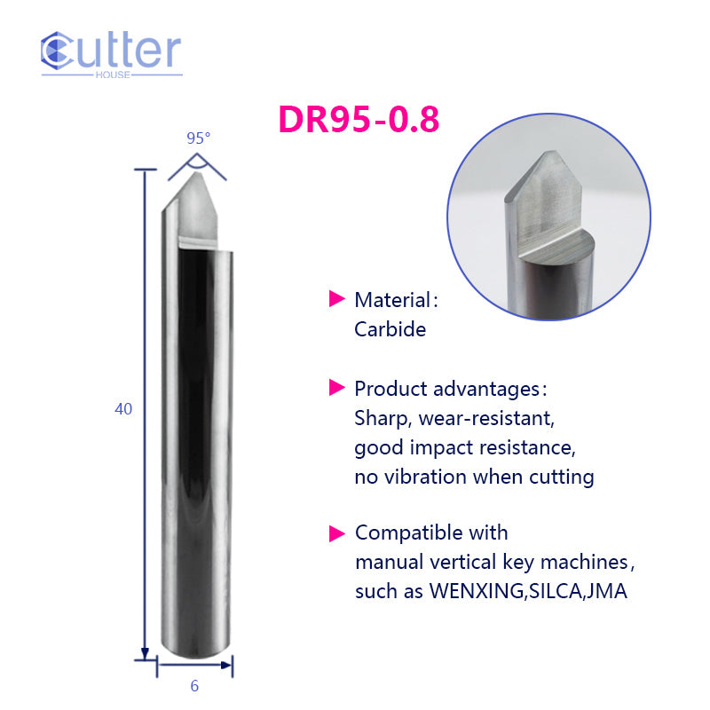 D6x95°x40Lx1T-0.8 Carbide Dimple Cutter compatible with Manual Key Cutting Machines