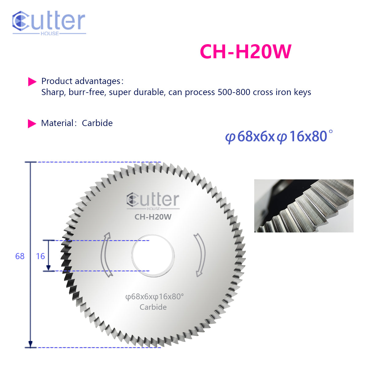 H20 φ68x6xφ16x80° Carbide Angle Milling Cutter