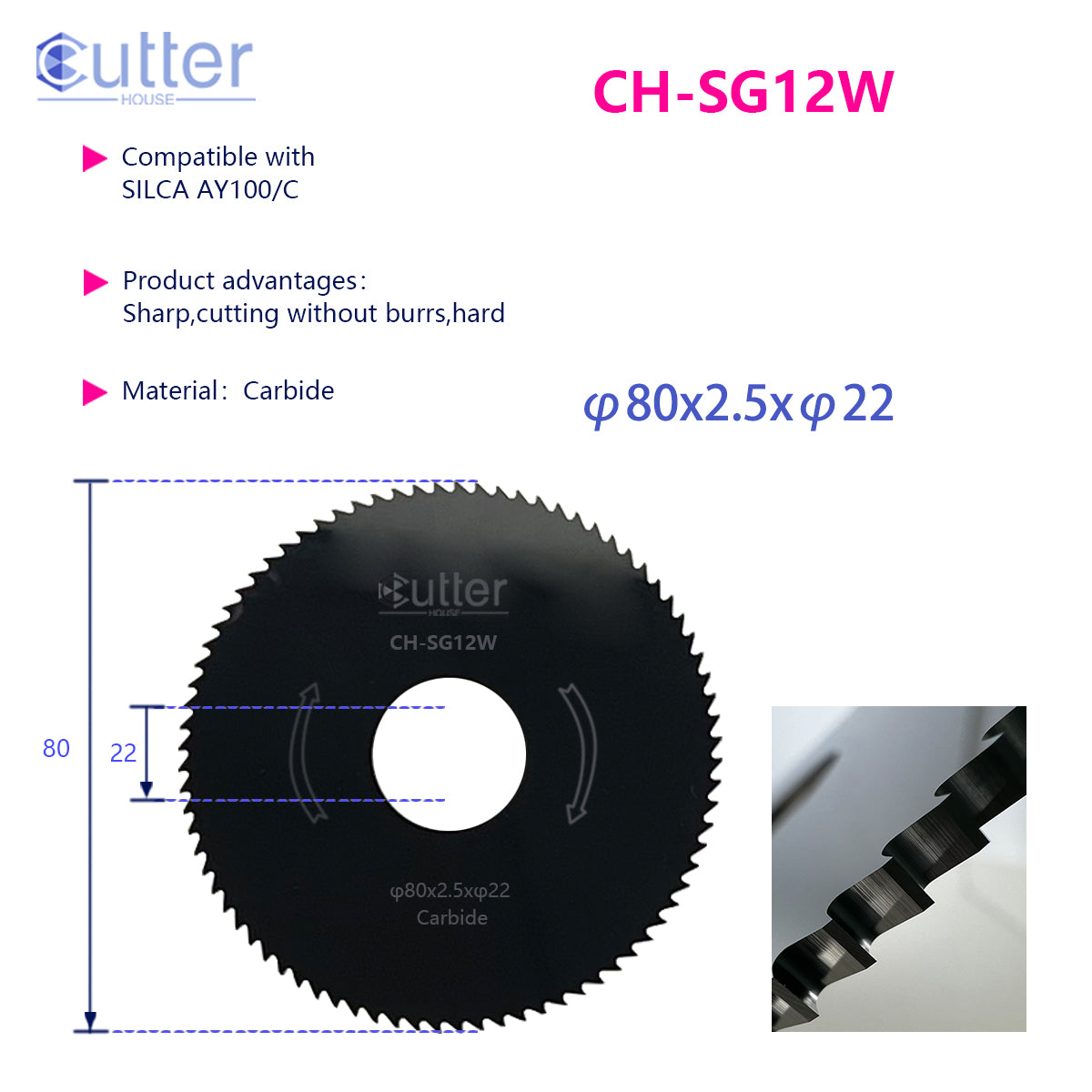 SG12 φ80x2.5xφ22 Carbide Flat Slotter compatible with SILCA
