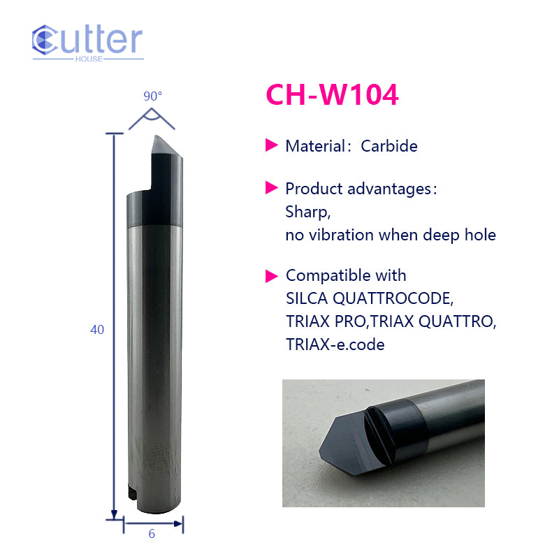 W104 D6x90°x40Lx1T-1.2 Carbide Dimple Cutter compatible with SILCA