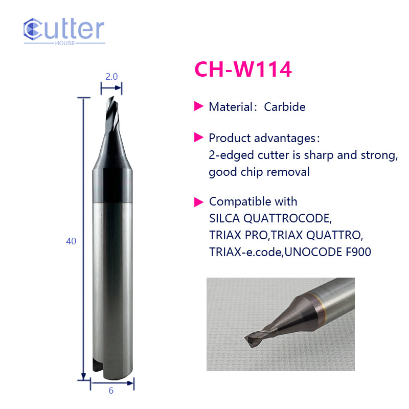 W114 φ2.0xD6x40Lx2F Carbide Laser Cutter compatible with SILCA